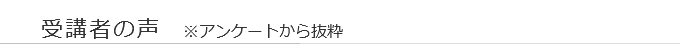 - ・短い時間で盛り沢山のことを学べました。講師が魅力的であることは大切だと実感しました。